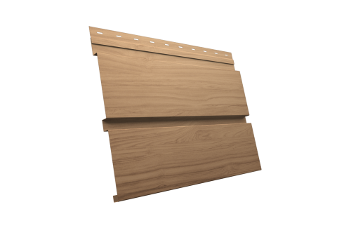 Квадро брус — металлический сайдинг, который имитирует внешний вид планкена "доска в разбежку". Простая геометрия профиля придает дому Скандинавский стиль. Современный дизайн достигается за счет прямых линий. В покрытии Print Elite максимально похож на натуральное дерево