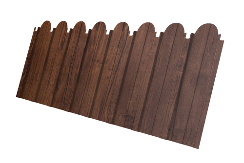 Grand Line представляет традиционный профнастил C10 в новой форме. Декоративная вырубка по верхнему краю листа позволяет возвести надежное, экономичное и при этом привлекательное ограждение. Профнастил C10 с фигурной кромкой имитирует классический русский деревянный забор.